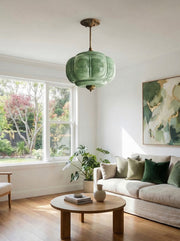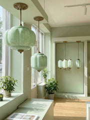 Cozy pumpkin glass lights, warm ambiance.