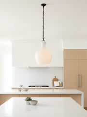 Riverina White Ribbed Glass Pendant - Milk Glass Light Over Island