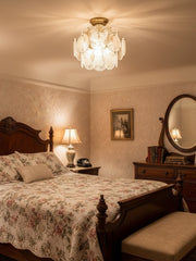 Sevra Glass Disc Ceiling Light - Round Brass Flush Mount for Bedroom