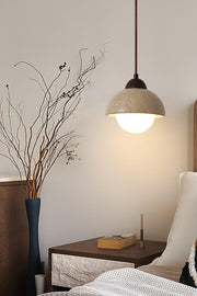 Modern Minimalist Hemisphere Travertine Wood Pendant Lamp