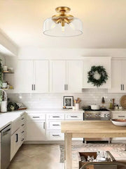 Vintage Semi Flush Mount Ceiling Light - Black and Glass Ceiling Fixture