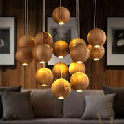 Wooden Orb Sphere Cluster Pendant Light M25