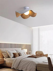 Olvara Scalloped Rattan Shade Flush Mount Ceiling Lamp – Boho Style Ceiling Light for Bedroom