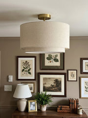 Dumora Double Drum Ceiling Light - Fabric Shade Flush Mount Elegance