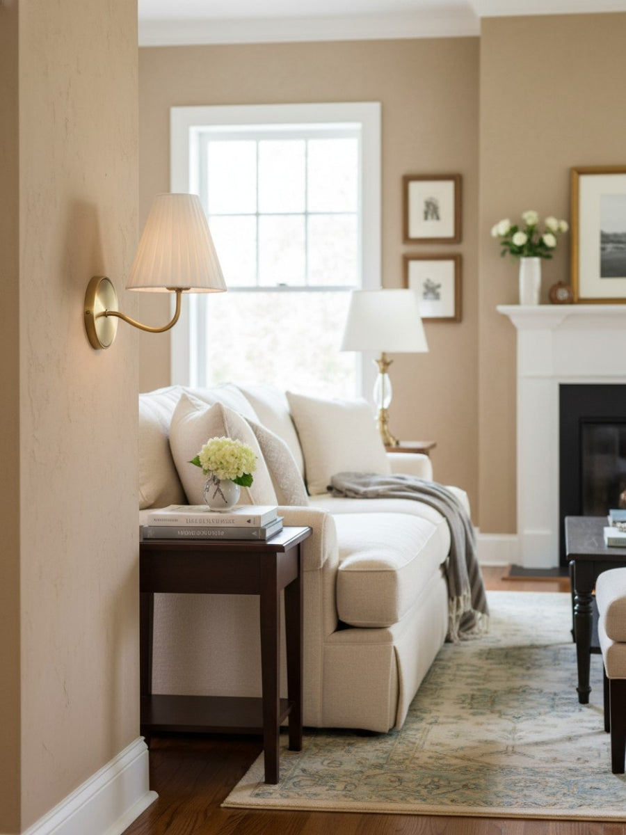 Ornato Luxe Vintage-Inspired Mid-Century Wall Lamp with Fabric Shade – Elegant Corridor & Entryway Lighting