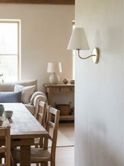 Ornato Luxe Brass Schoolhouse Sconce – Art Deco Wall Light with Fabric Shade