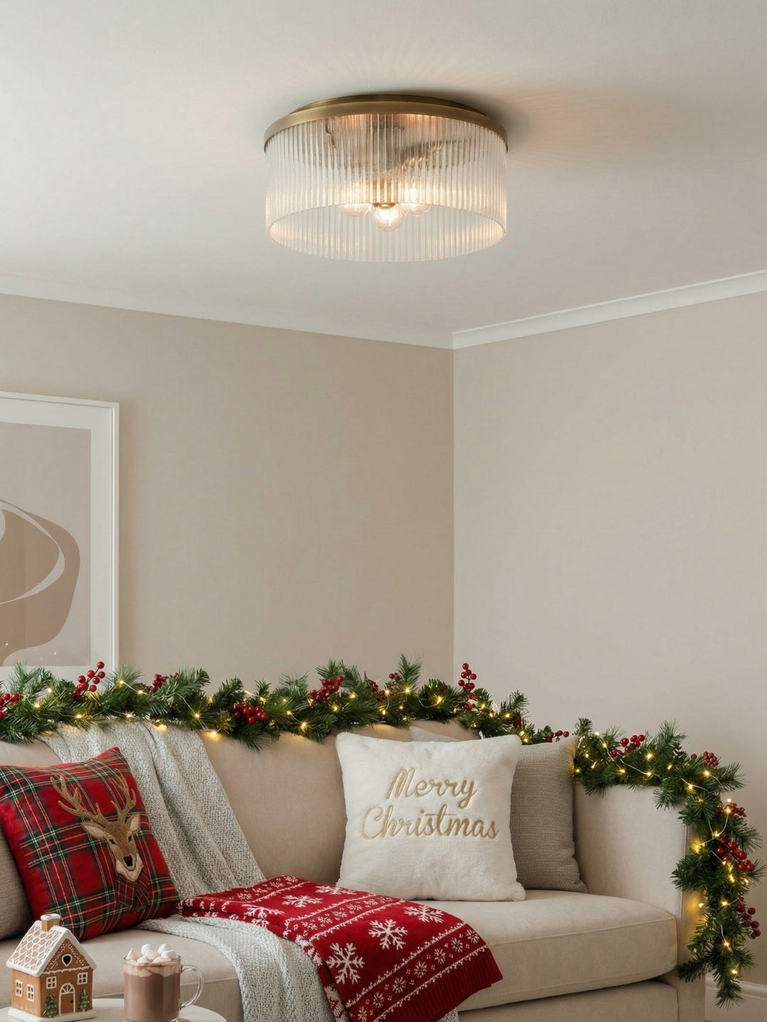 Bravira Elegant Ribbed Glass Flush-Mount Ceiling Light ā Modern Low-Profile Fixture for Bedroom