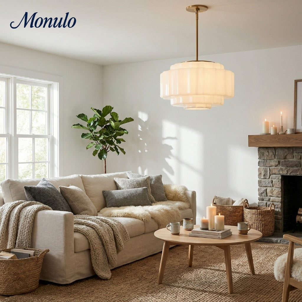 Geotower Glass Tiered Opal Pendant Light - Art Deco Vintage Style Ceiling Lamp for Living and Dining Areas
