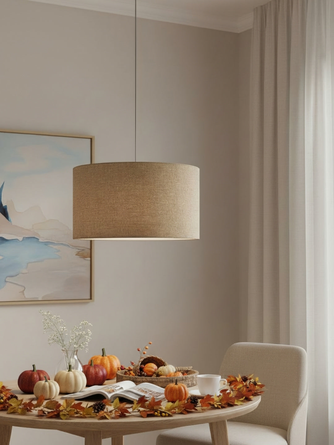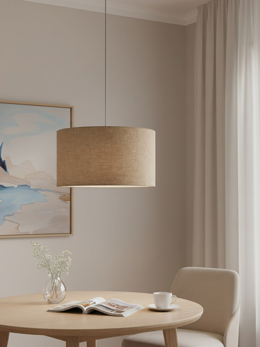 Dumora gewebter Struktur-Trommelschirm Anhänger – moderne minimalistische Deckenlampe für Ess- und Wohnzimmer