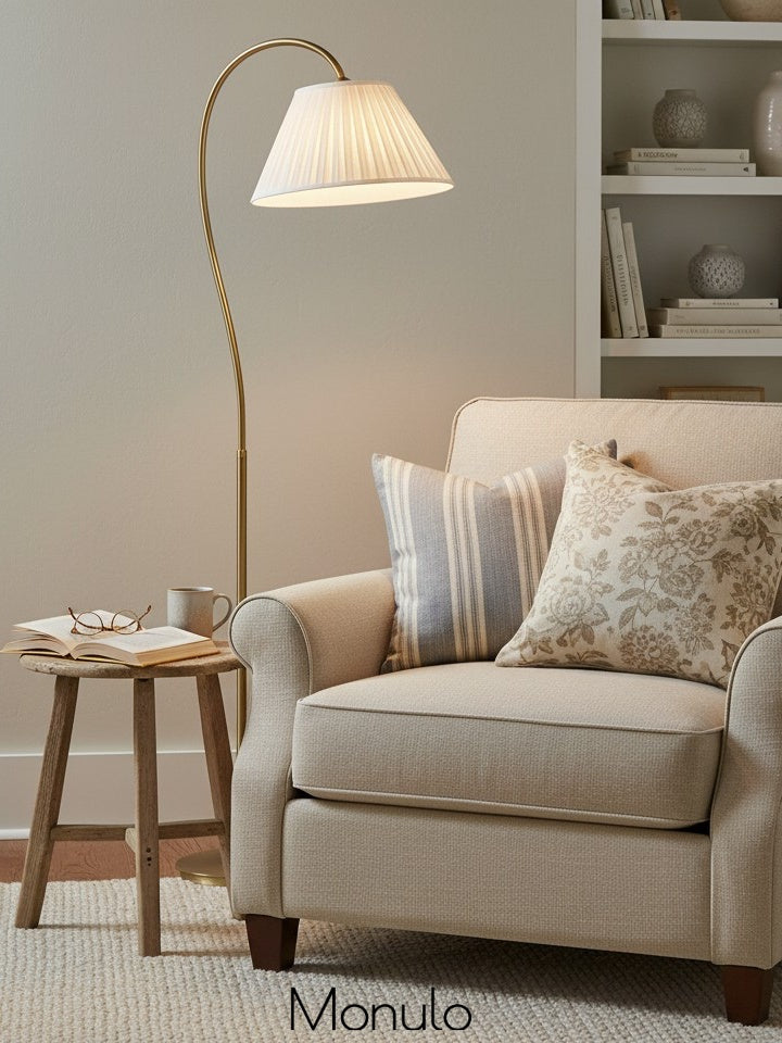 Luvora Plissierte Schirm Stehlampe - Verstellbares Leinenlicht im Bauernhausstil