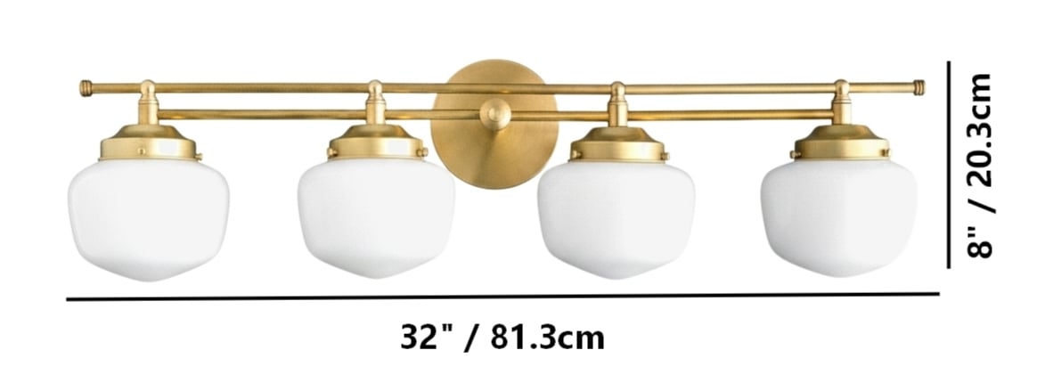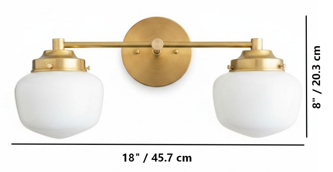 Elevate your bathroom décor with this Art Deco vanity light, crafted with elegant schoolhouse-style glass globes and a decorative double bar design. Perfect above a mirror or sink, this timeless wall sconce blends vintage charm with modern function for a refined touch.