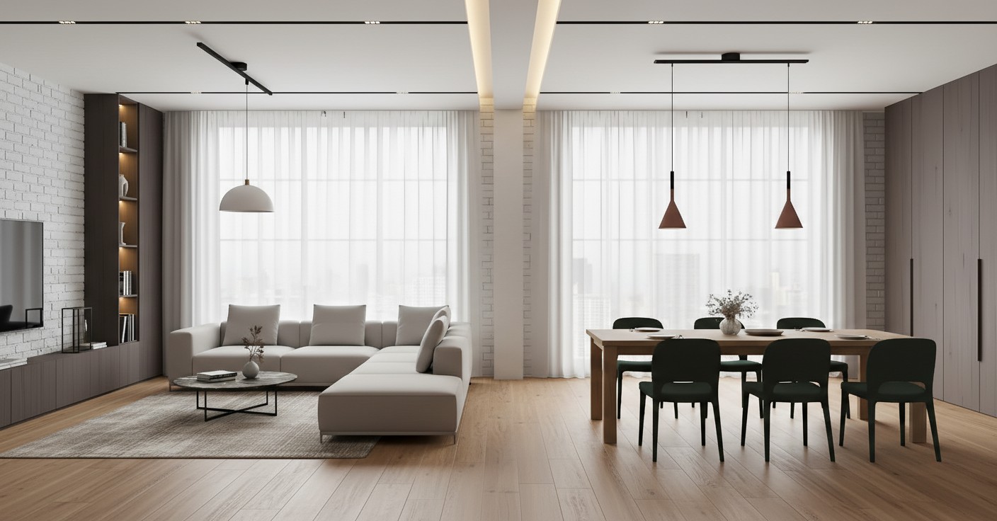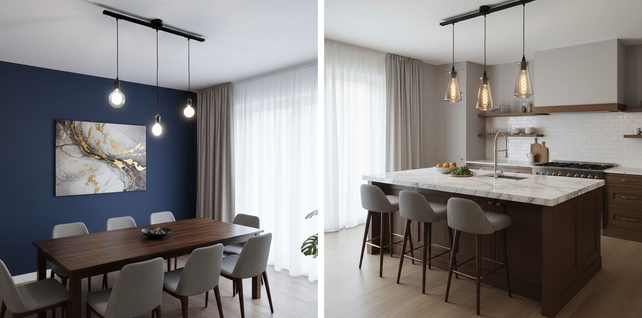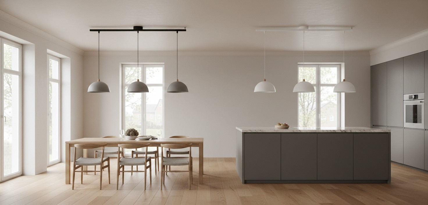 Dieses verstellbare Deckenschienensystem bietet eine flexible Möglichkeit, Pendelleuchten zu positionieren und dabei ein sauberes, modernes Erscheinungsbild zu bewahren. Das schlanke Schienendesign fügt sich nahtlos in zeitgenössische Innenräume ein und ermöglicht Beleuchtungsanordnungen, die sich an unterschiedliche Bedürfnisse anpassen. Ideal für Wohnzimmer, Essbereiche, Küchen, Studios und gewerbliche Räume, in denen visuelles Gleichgewicht und Anpassungsfähigkeit wichtig sind.