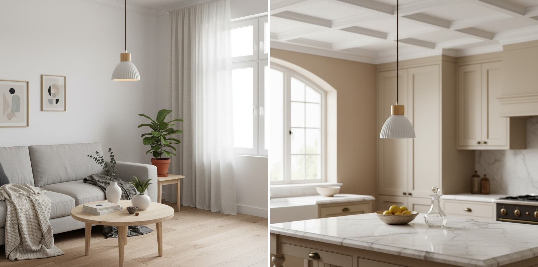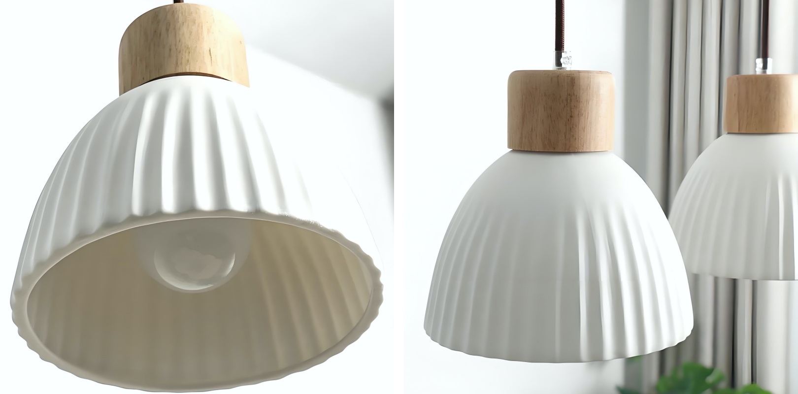 Die Hängeleuchte besticht durch eine klare runde Silhouette, die von skandinavischen Gestaltungsprinzipien inspiriert ist. Durch die Kombination glatter Keramikoberflächen mit dezenten natürlichen Akzenten entsteht ein ausgewogenes Erscheinungsbild, das sowohl warm als auch schlicht wirkt. Sie bietet fokussierte, dennoch sanfte Beleuchtung und eignet sich ideal für Esszimmer oder moderne Wohnräume.