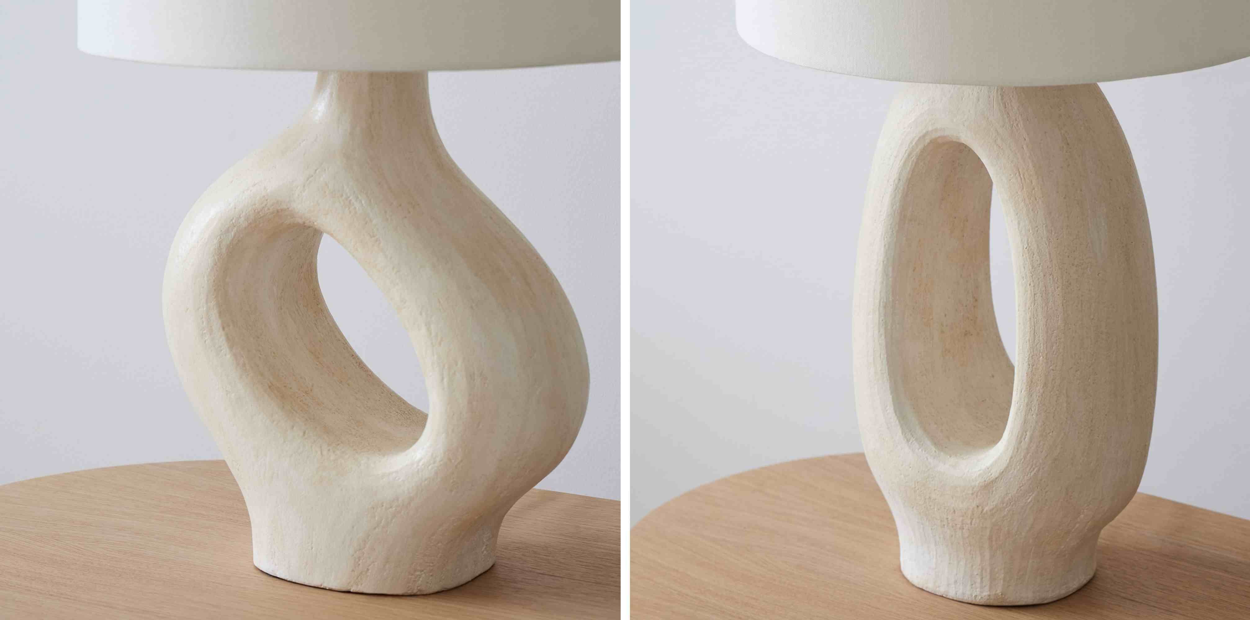 - Keramikbasis: Einzigartiges abstraktes skulpturales Design mit organischen Formen und Negativraum.
