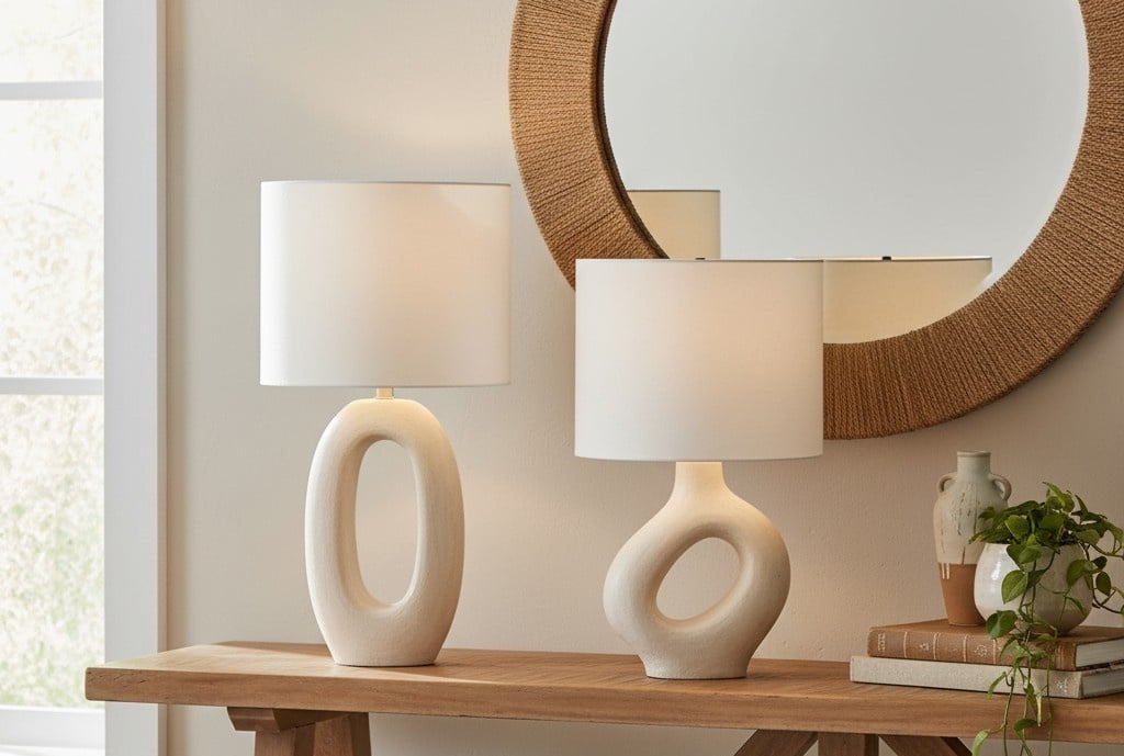Verleihen Sie Ihrem Raum mit der Ceruna Tischlampe eine besondere Note, die eine wunderschön gestaltete Keramikbasis kombiniert, welche organische Formen mit moderner Eleganz verbindet. Diese vielseitige Lampe besticht durch eine strukturierte Oberfläche und eine sanft geschwungene Silhouette, die warmes, einladendes Licht erzeugt – perfekt für jeden Raum.