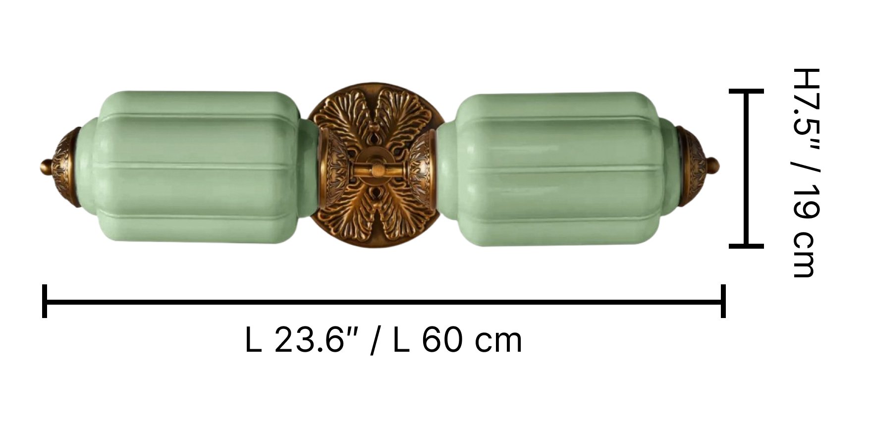 - 2 Köpfe: L 23,6" x H 7,5" / L 60 cm x H 19 cm