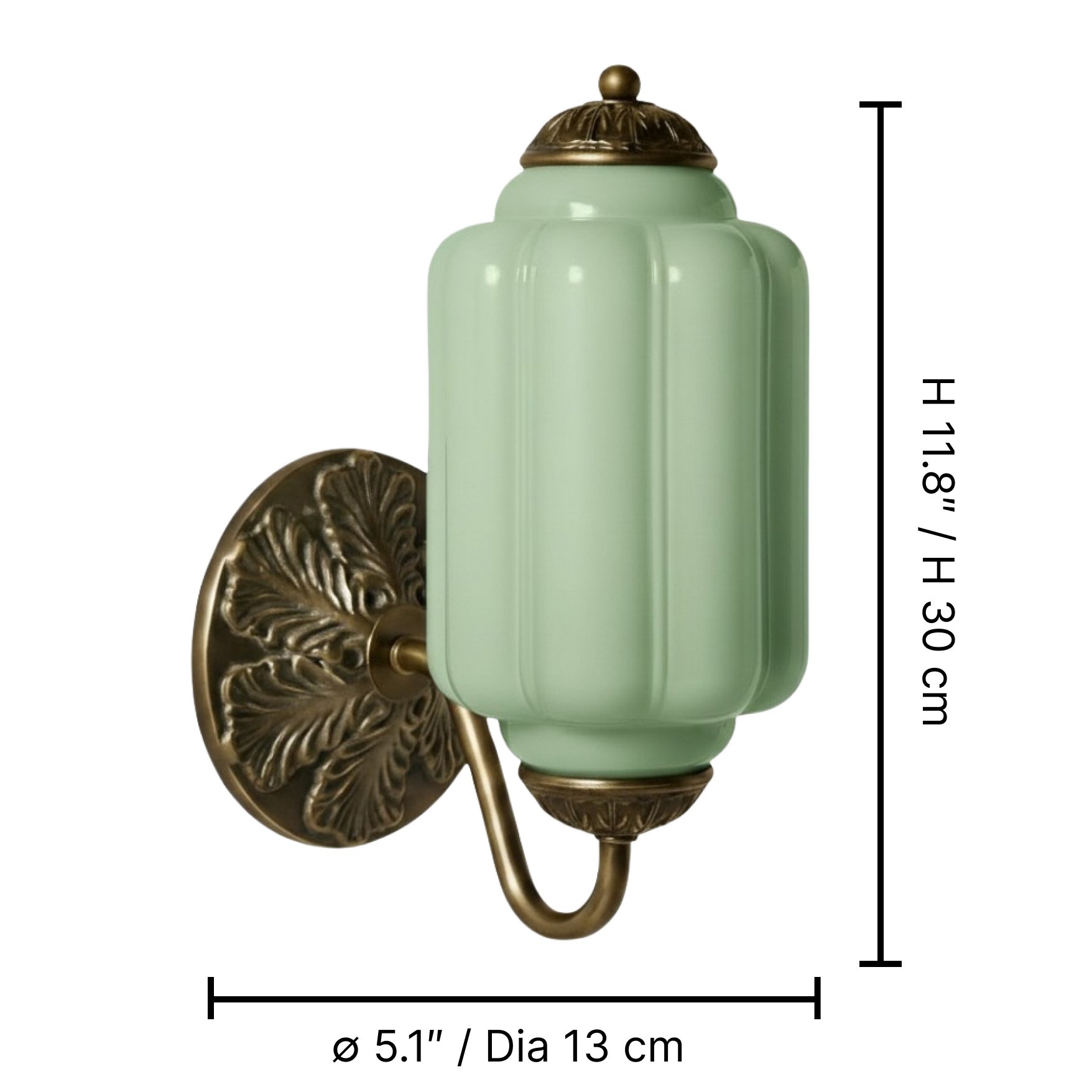 Mit ihrem glatten Milchglas und dem antiken Messingsockel strahlt die Wandleuchte Eloise Vintage-Eleganz aus. Die Leuchte bietet ein weiches, diffuses Licht und verleiht Schlafzimmern, Fluren und gemütlichen Wohnräumen Eleganz.
