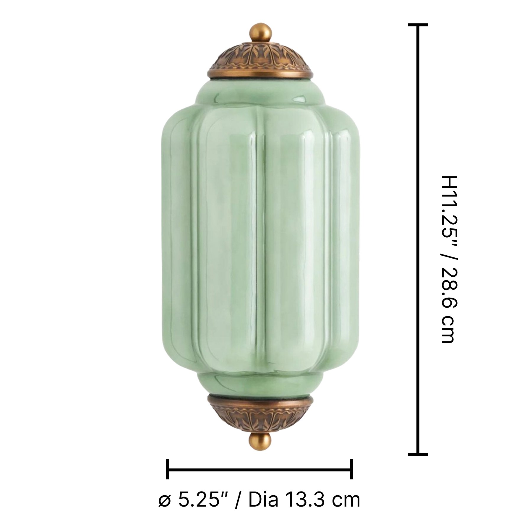 - Milchglas- oder Laternenglasschirm, erhältlich in Grün, Weiß, Blau, Rosa, Lavendel, Orange und Gelb.
