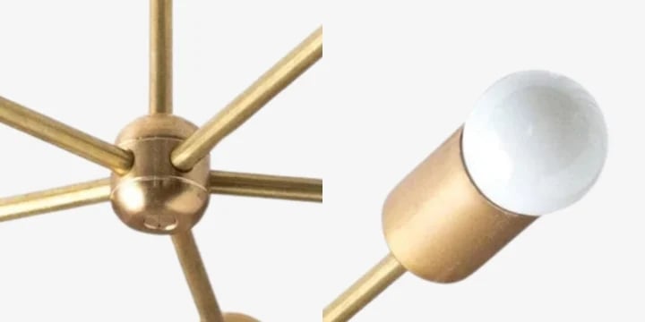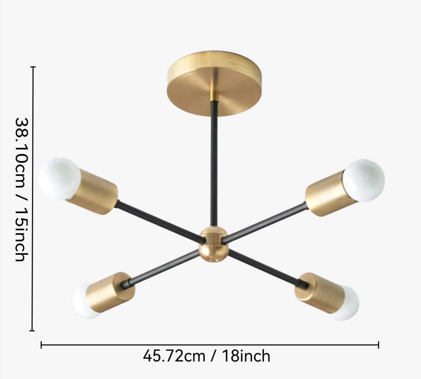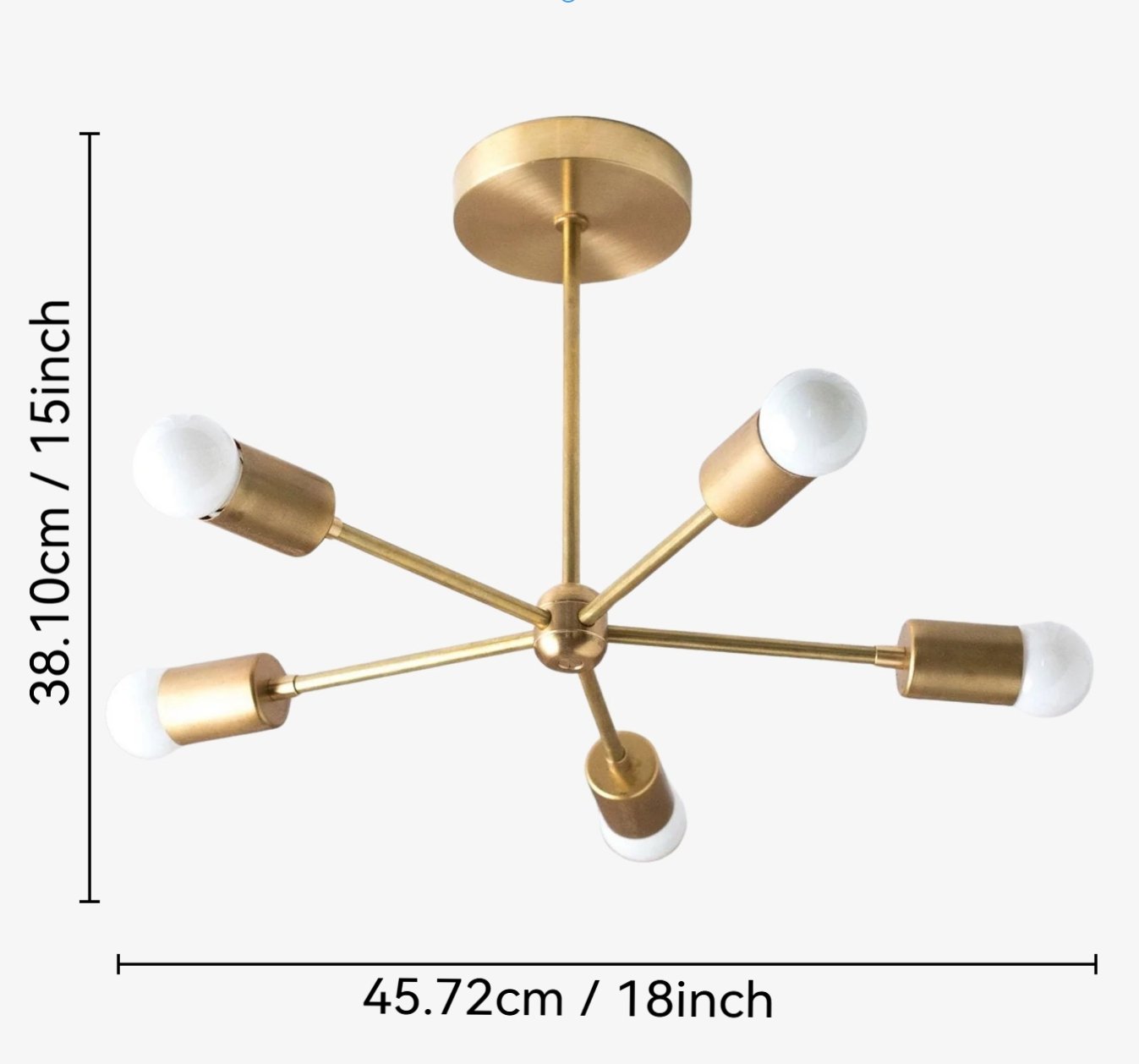 SizeElevate your space with this stunning mid-century modern sputnik chandelier. Featuring a geometric design in lustrous brass finish, this semi-flush ceiling light adds a touch of timeless elegance to any room. Perfect for dining areas, living rooms, or entryways, it combines retro charm with contemporary style. Its sleek silhouette and gold finish make it a standout piece that complements both modern and vintage decor. Discover the perfect blend of form and function with this eye-catching chandelier.