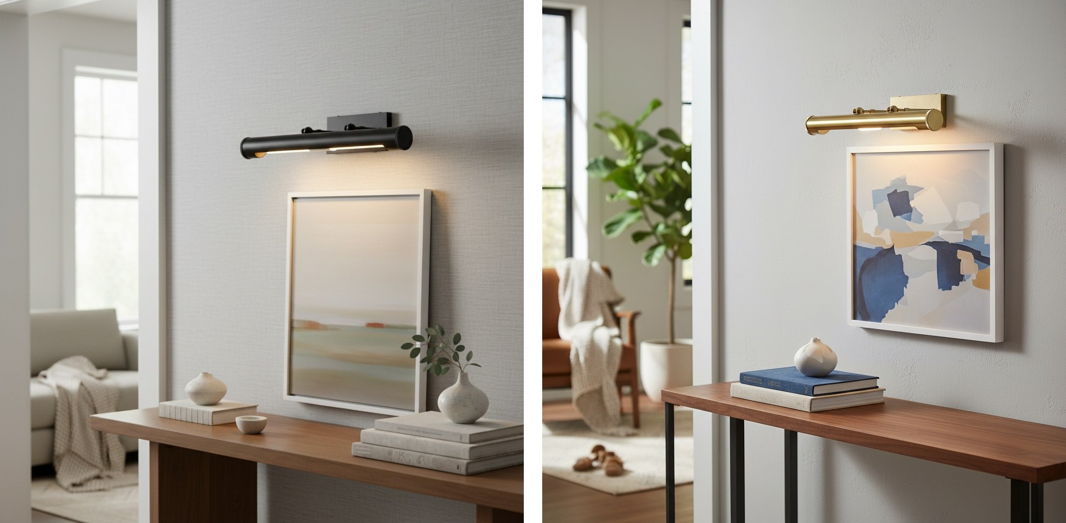Mit einem eleganten, gebogenen Arm und einer ausgewogenen, proportionalen Silhouette setzt diese Bilderleuchte auch im ausgeschalteten Zustand ein stilvolles Statement. Der vollständig verstellbare Schwenkarm ermöglicht es Ihnen, das Licht genau dorthin zu lenken, wo es benötigt wird, und sorgt so für optimale Ausleuchtung ohne Blendung.