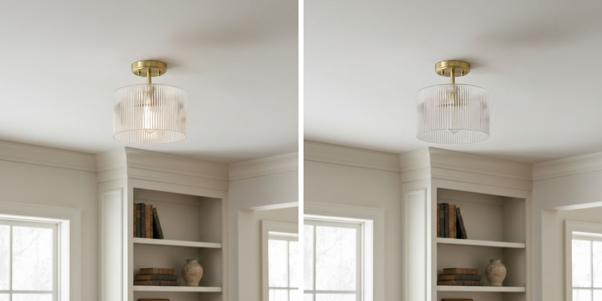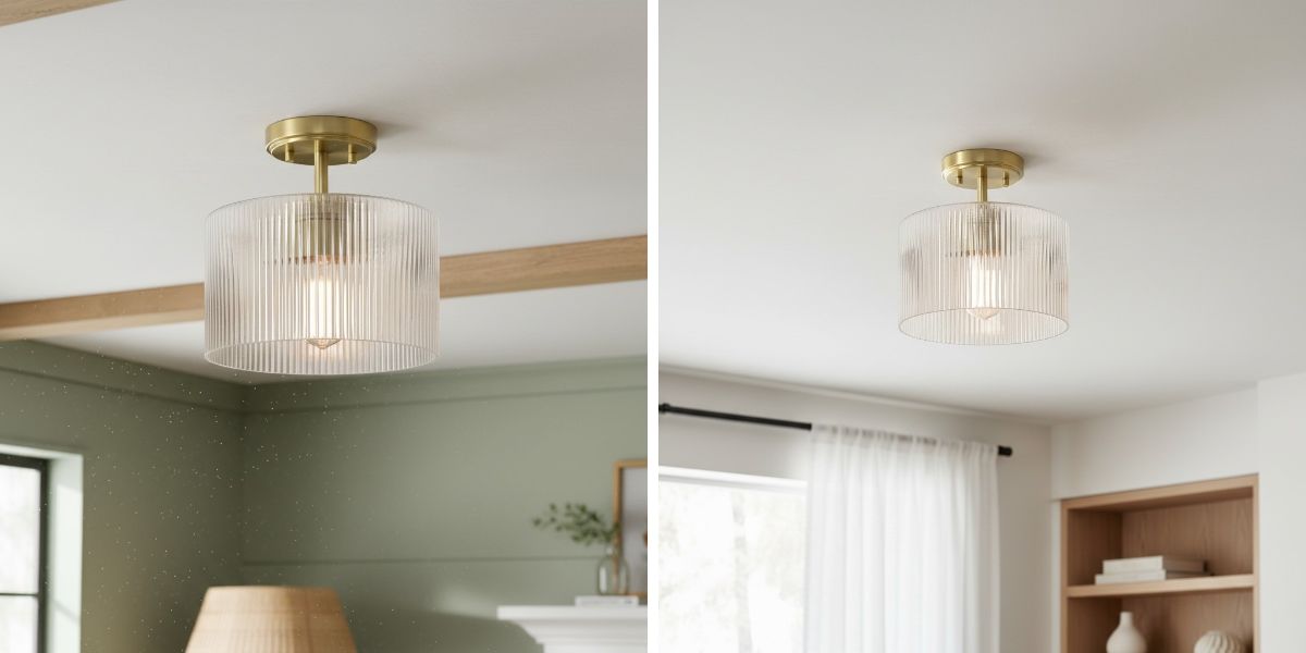 Die Rivora Farmhouse gerippte Glas-Halbeinbau-Deckenleuchte verfügt über einen gerippten Glasschirm, der das Licht sanft streut und eine warme, einladende Atmosphäre schafft. Ihr Farmhouse-trifft-modern-Design verleiht visuelle Tiefe und ergänzt Schlafzimmer, Küchen, Flure und Wohnräume mit rustikalem Charme und zeitgenössischer Eleganz.