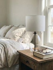 Lámpara de mesa de hierro y lino Rowan: elegante iluminación tradicional para la mesita de noche