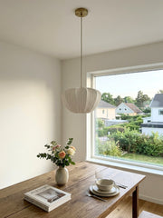 Lámpara colgante festoneada de lino Oslan - Pantalla de tela color marfil para comedor