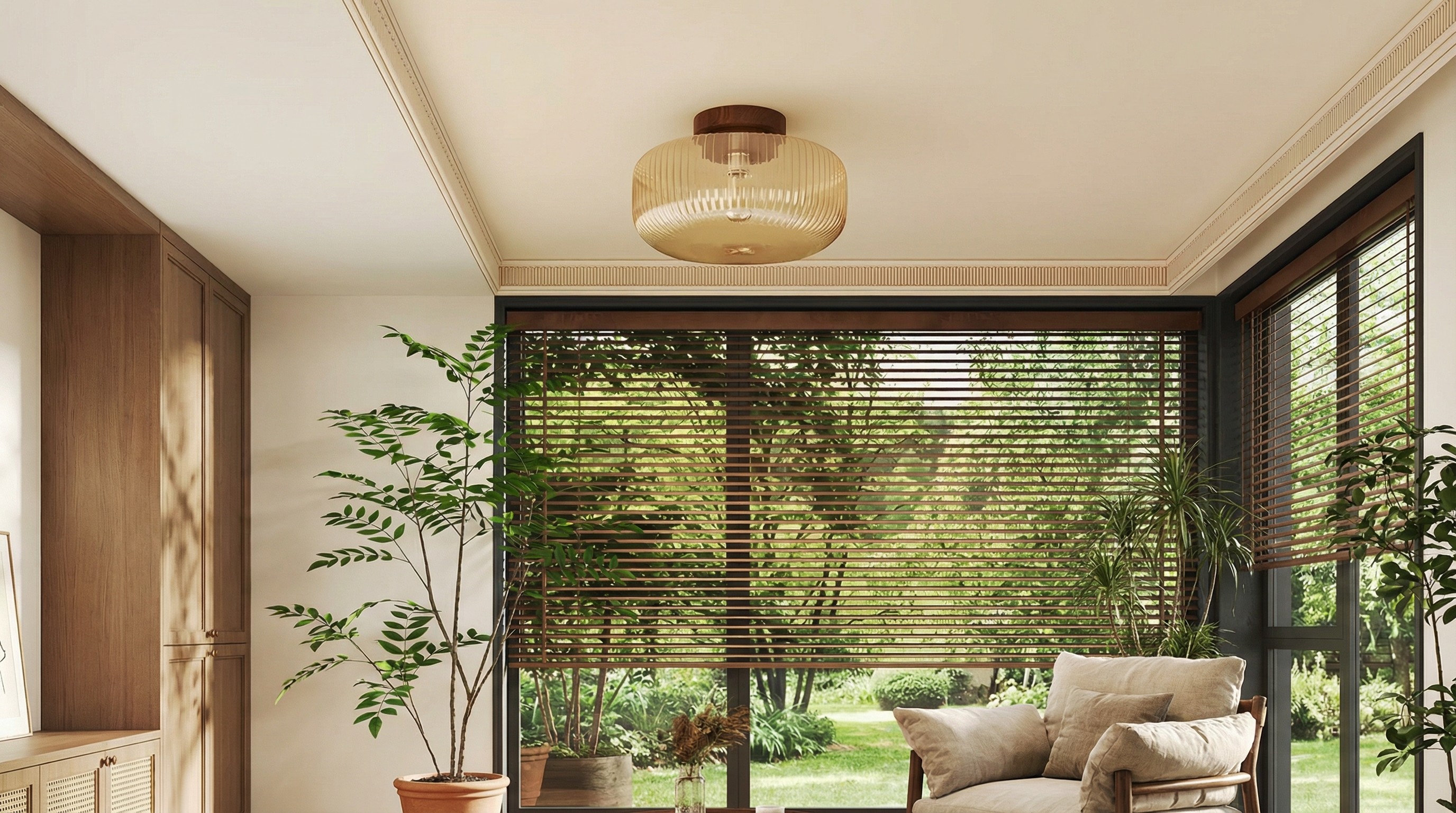 - Efecto de iluminación: Resplandor ámbar difuso con suaves reflejos tonales gracias al vidrio estriado.