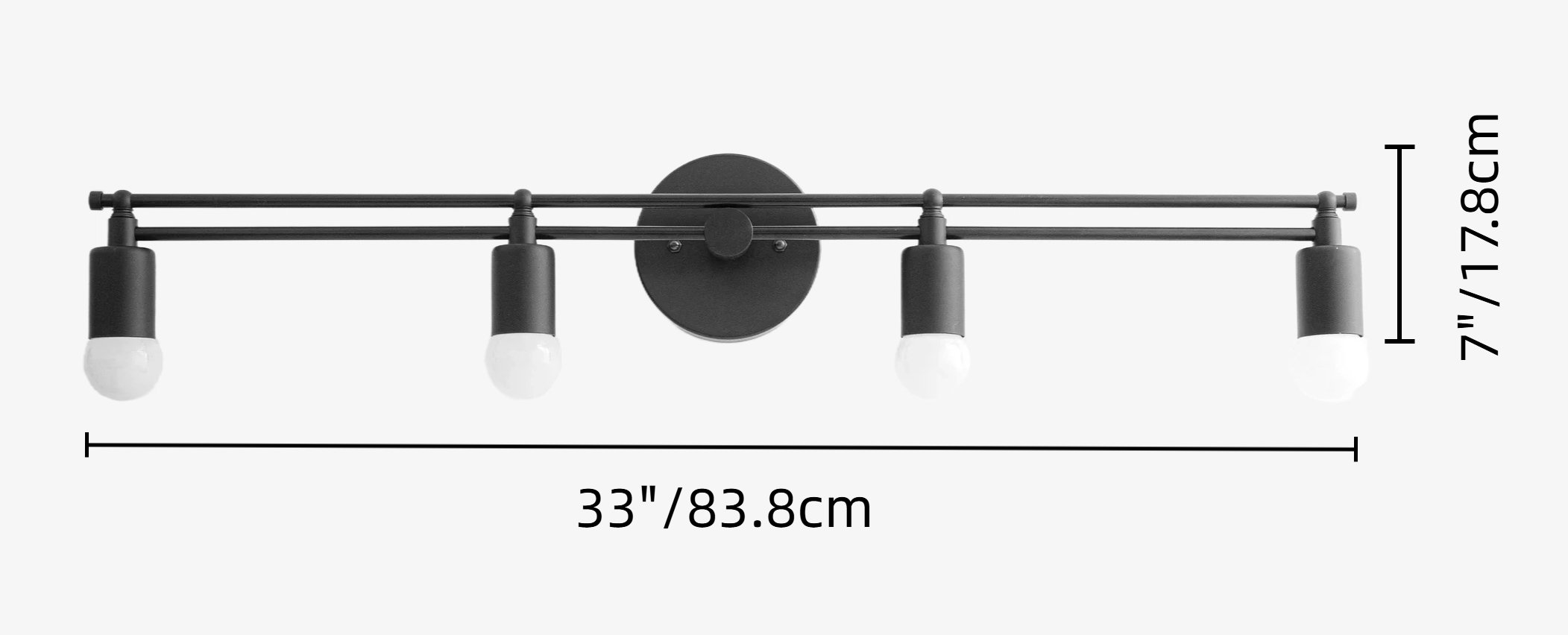 - 4 Heads : W 33″ x H 7″ / W 83.8 cm x H 17.8 cm