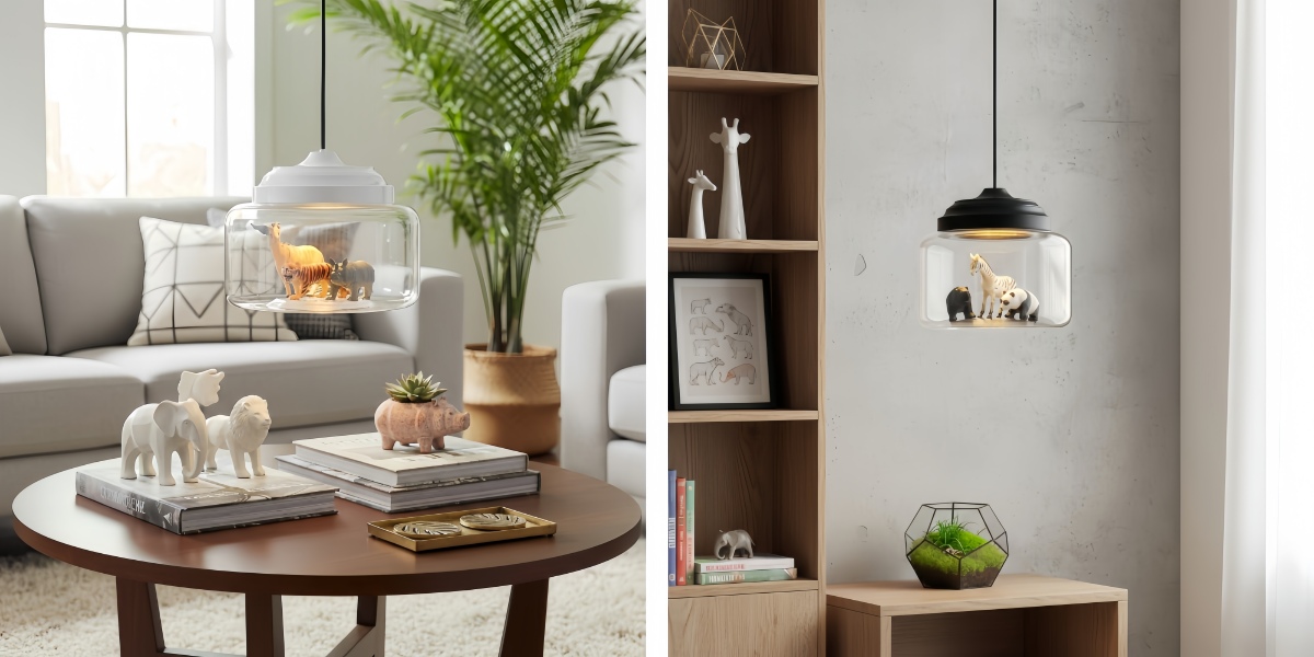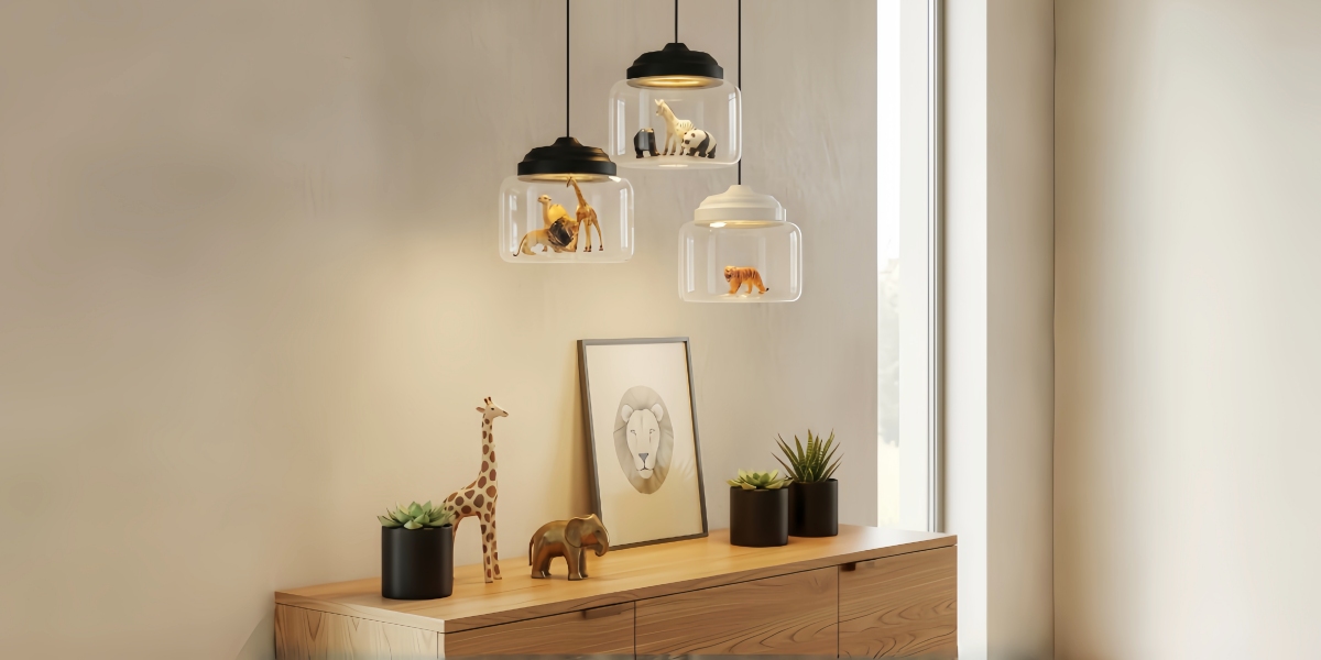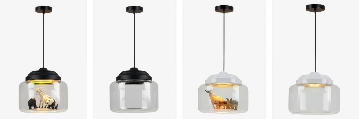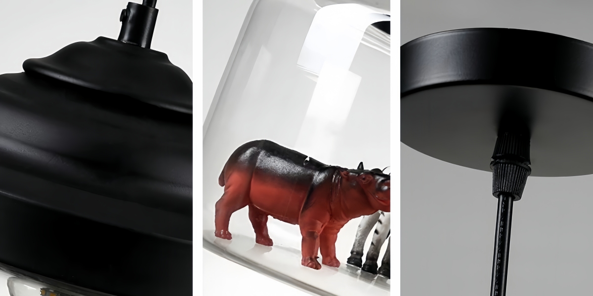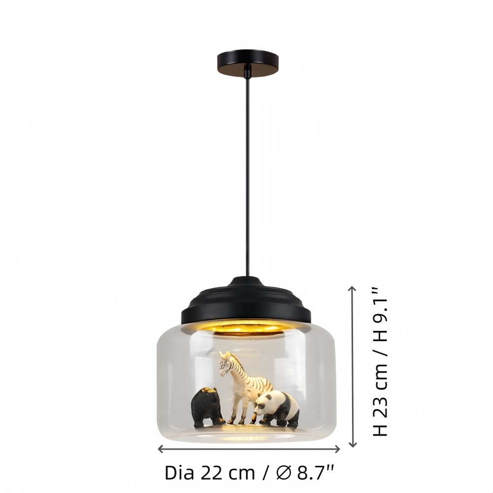 Agrega encanto e imaginación a los espacios infantiles con esta lámpara colgante de vidrio inspirada en animales. Con motivos divertidos de zoológico y un diseño visualmente atractivo, ofrece una iluminación ambiental suave mientras actúa como un punto focal decorativo. Ideal para guarderías, dormitorios infantiles o áreas de juego creativas.