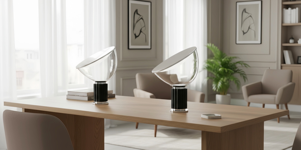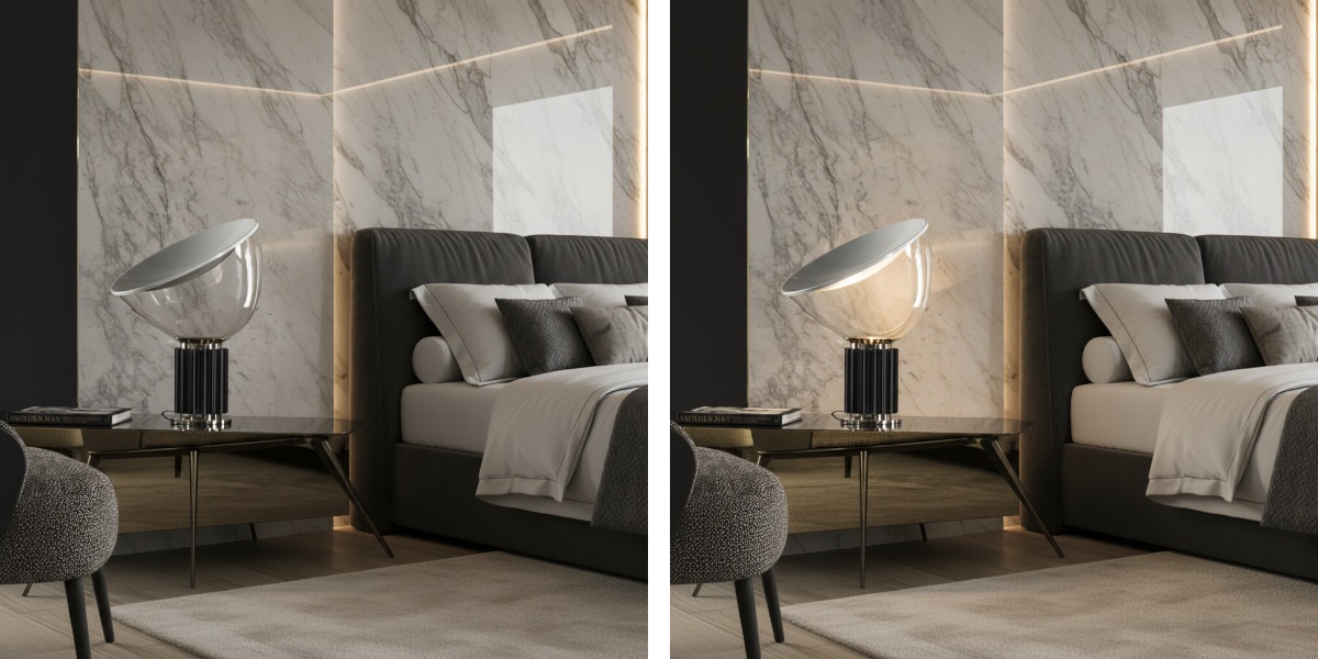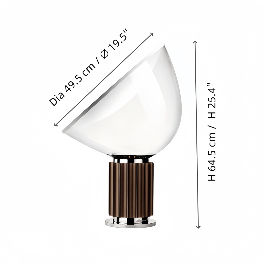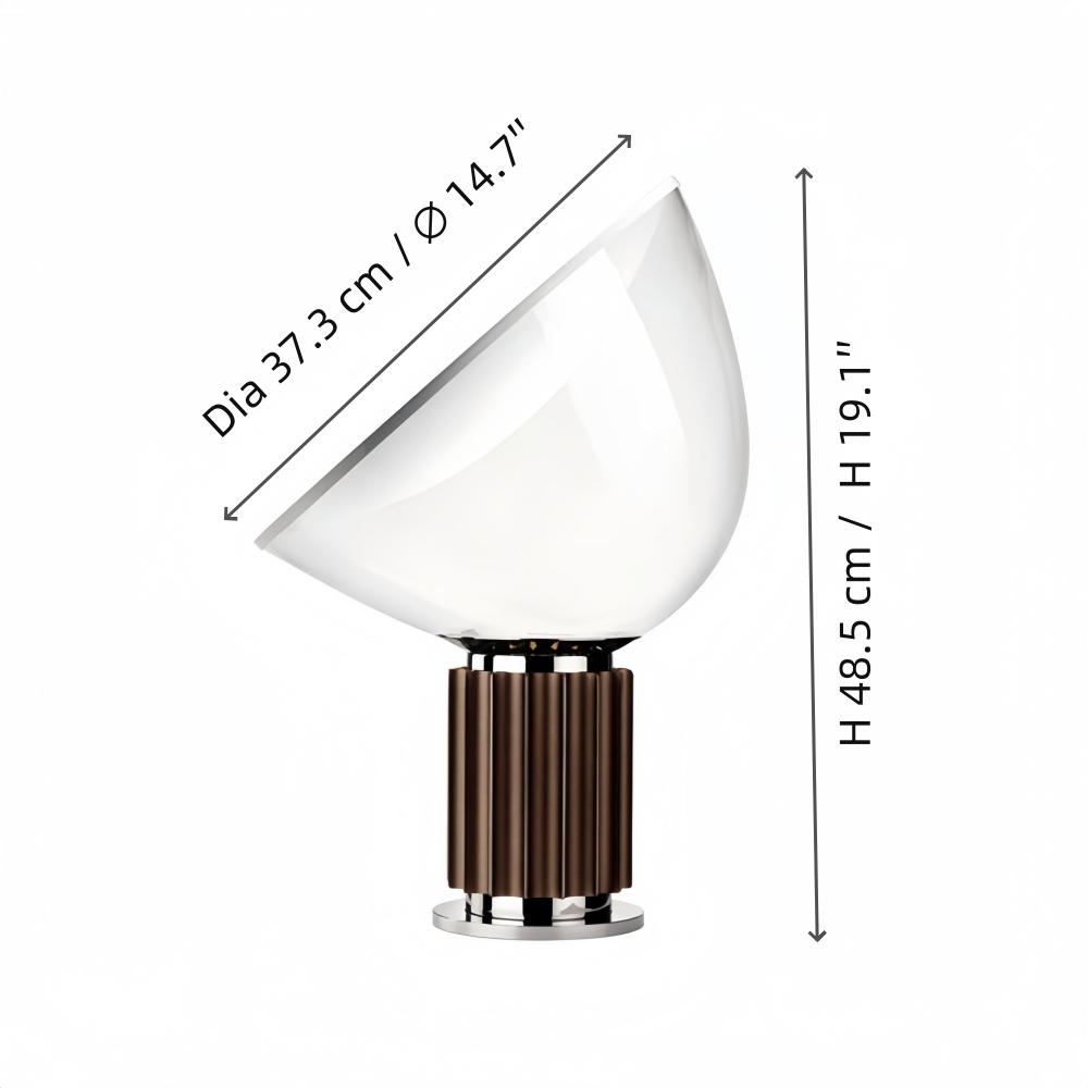 La lámpara de mesa Bowlum presenta una forma escultórica de cuenco con una pantalla de vidrio refinada que dirige la luz hacia arriba. El diseño de vidrio suaviza la iluminación y crea un resplandor ambiental cálido, ideal para salas de estar, dormitorios o rincones de lectura con iluminación indirecta.