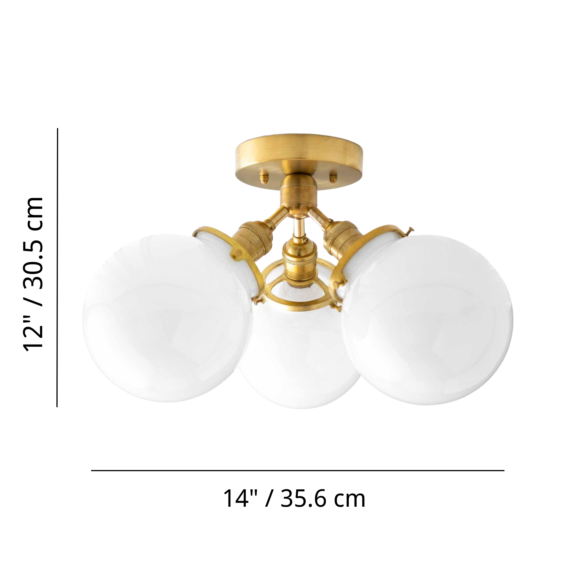 The Glorica Glass Globe Light brings mid century modern charm to your space. Crafted from solid brass with a soft, natural patina and paired with a luminous globe shade, this semi flush ceiling lamp offers a warm glow and timeless design. Perfect for dining rooms, living areas, and entryways.