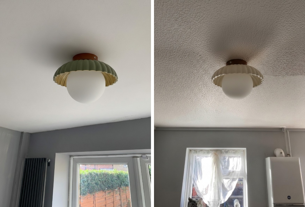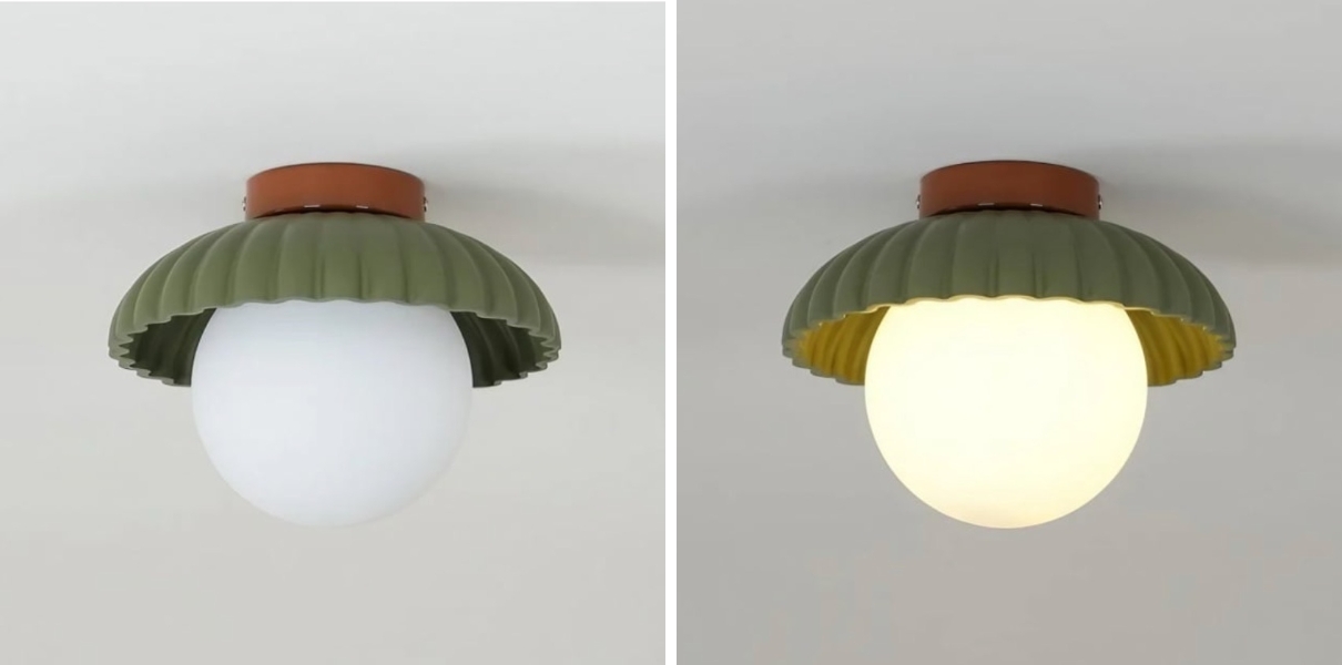 - Presencia decorativa: Actúa como iluminación ambiental y como un acento escultórico en el techo.