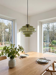 Lámpara colgante de vidrio acanalado: lámpara colgante vintage de vidrio verde con un toque moderno.