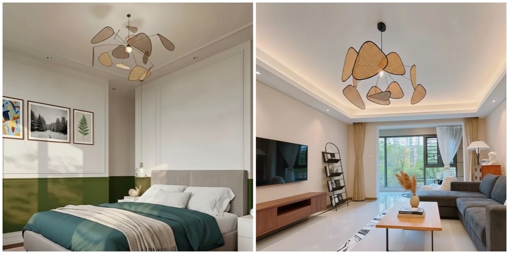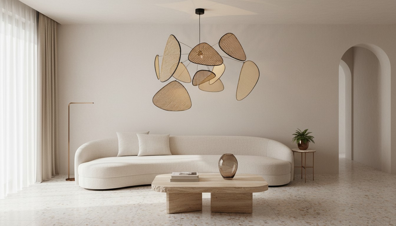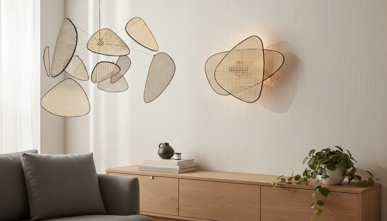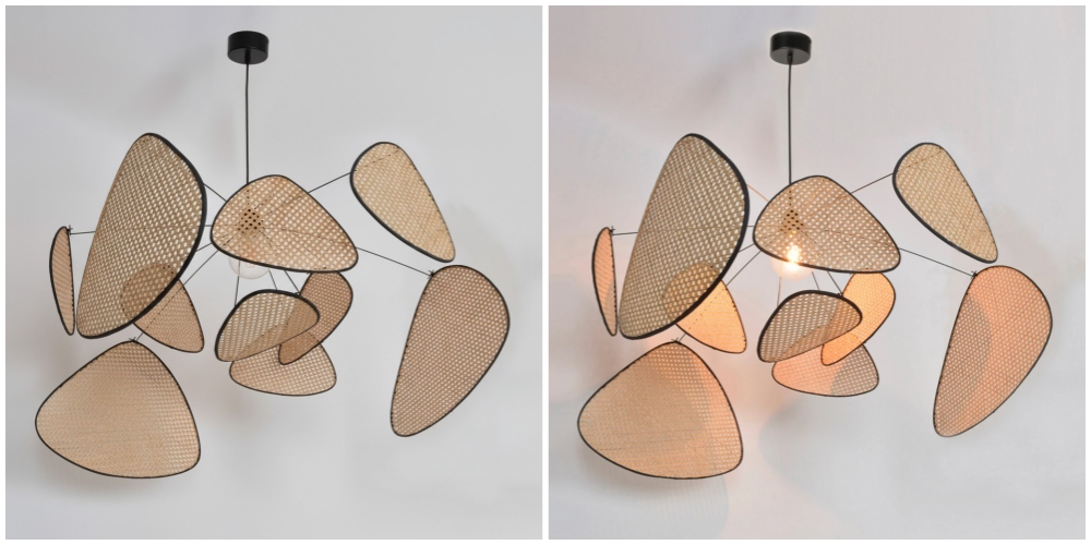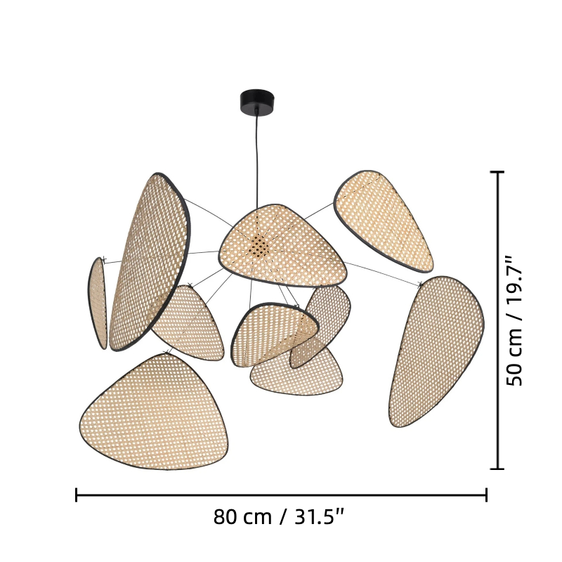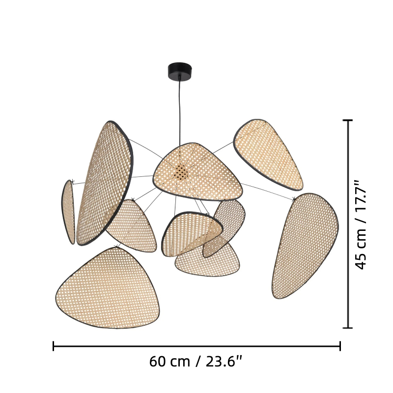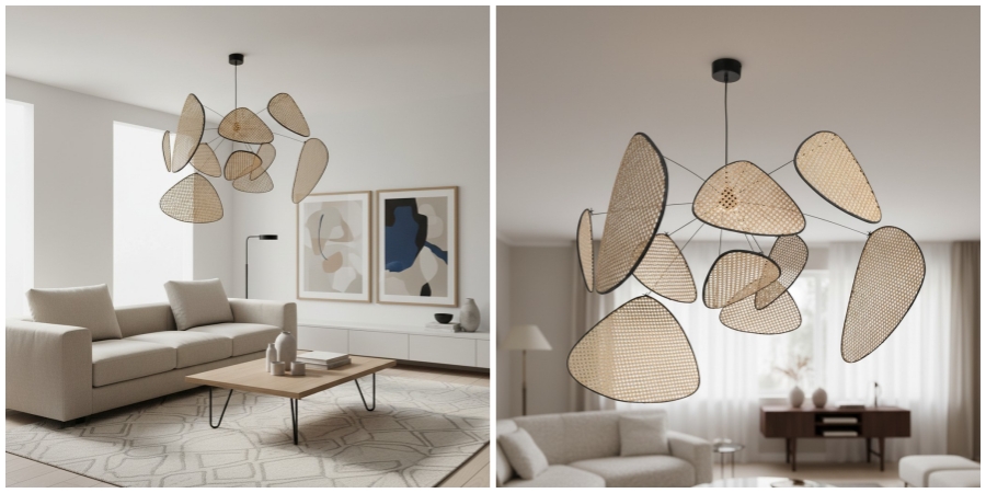 Esta lámpara de araña artesanal de ratán cannage combina texturas naturales tejidas con un marco metálico ajustable, creando una luz colgante refinada que suaviza y difunde la iluminación LED. Su silueta aireada y detalle artesanal brindan calidez orgánica e interés visual, elevando comedores, cocinas, espacios de estar e interiores de hospitalidad con elegancia relajada.