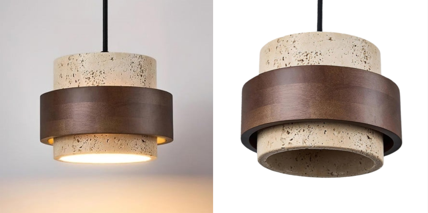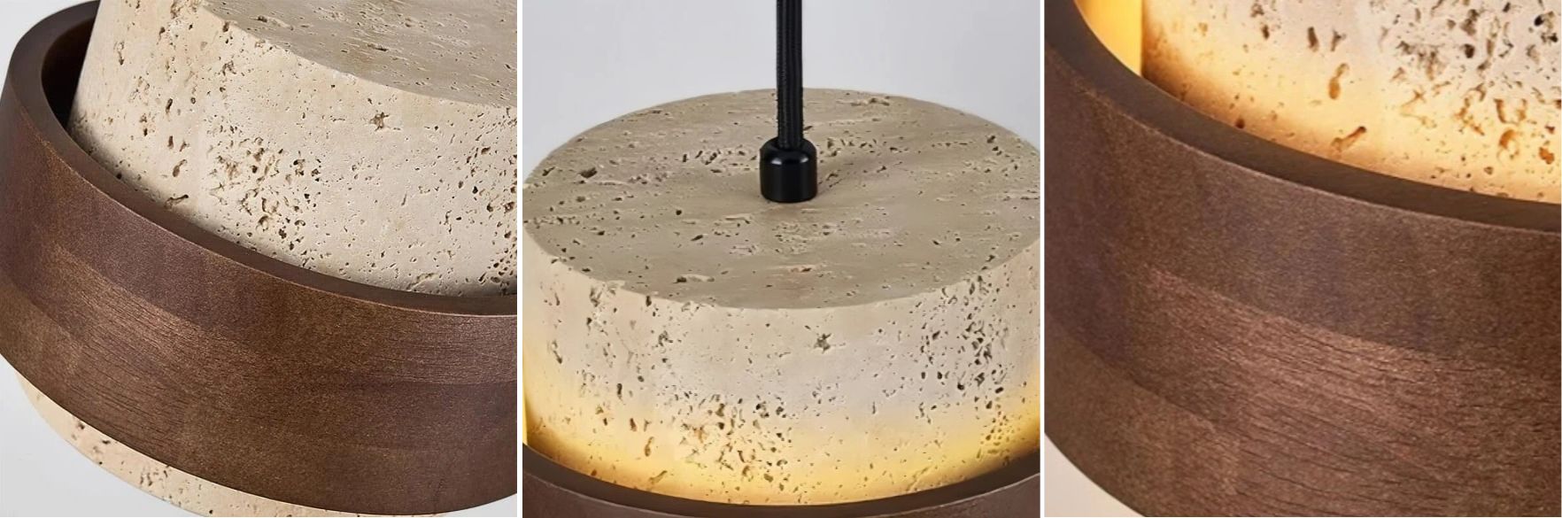 Esta lámpara colgante cilíndrica de travertino exhibe la auténtica artesanía en piedra combinada con un marco de madera y metal de corte preciso, aportando textura orgánica y artesanía refinada a interiores modernos. La exclusiva pantalla de piedra natural crea sutiles variaciones en tono y patrón.