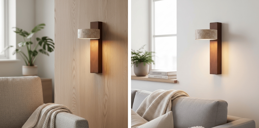 La luz de pared combina una base de madera lisa con una pantalla de travertino que presenta texturas naturales irregulares. Su diseño minimalista y contemporáneo proyecta una luz ambiental cálida, ideal para dormitorios, pasillos, salas de estar, comedores y cocinas. Duradera y elegante para un uso versátil en el hogar o la oficina.