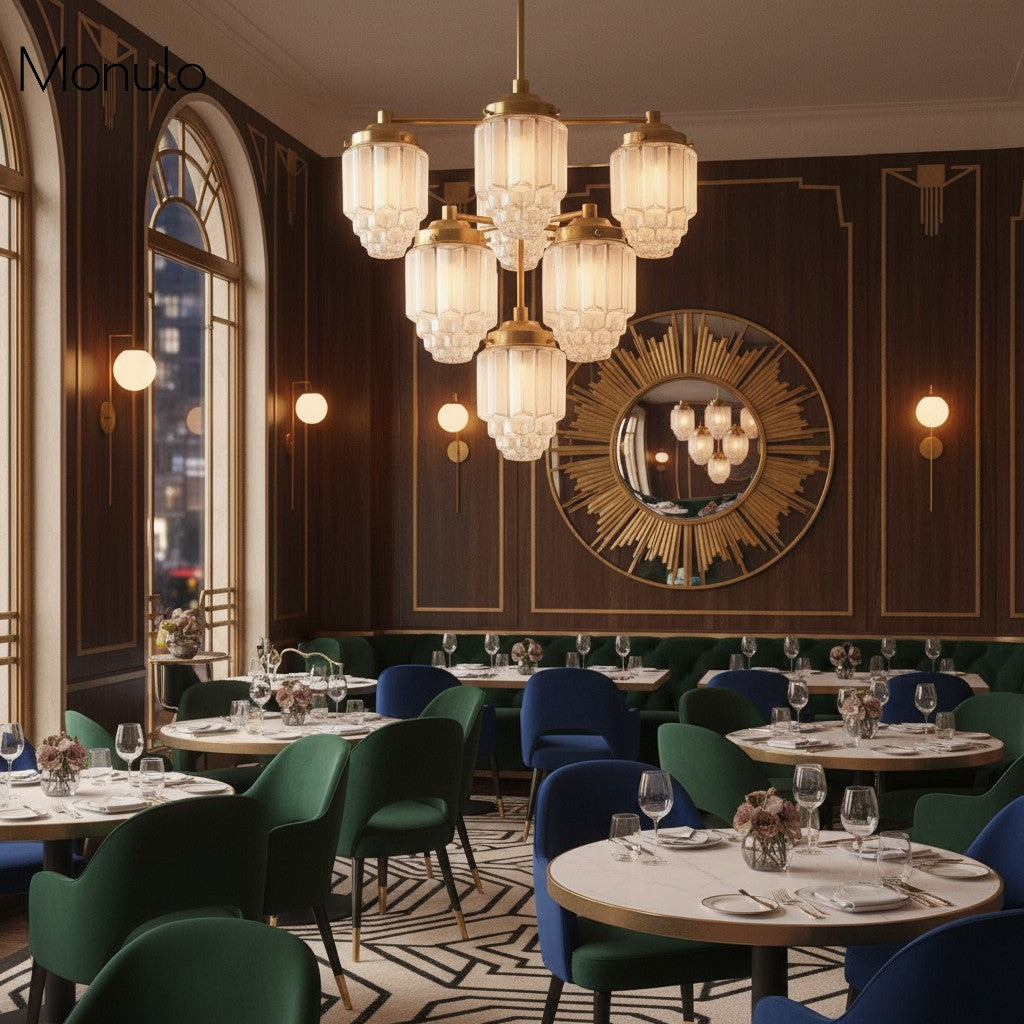 Tierlux Glass Art Deco Skyscraper Crystal Chandelier – Brass Pendant Light for Dining Room and Foyer