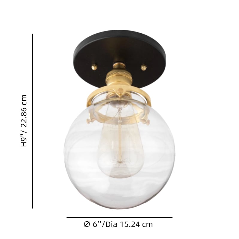 Our vintage ceiling light features a sturdy metal flush mount base and a clear glass globe, designed to create a warm, inviting glow. Perfect for adding a nostalgic, edgy yet refined touch to your kitchen, hallway, or bedroom. This piece masterfully blends retro character with modern sensibility.