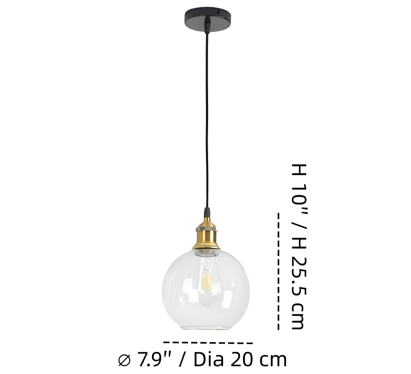 Cette lampe suspendue à globe en verre présente un abat-jour sphérique lisse associé à des détails métalliques raffinés, alliant le minimalisme nordique à l'élégance d'antan. Le verre transparent diffuse la lumière en douceur, créant une ambiance chaleureuse pour les salles à manger, les salons et les couloirs. Idéale seule ou disposée en groupes.
