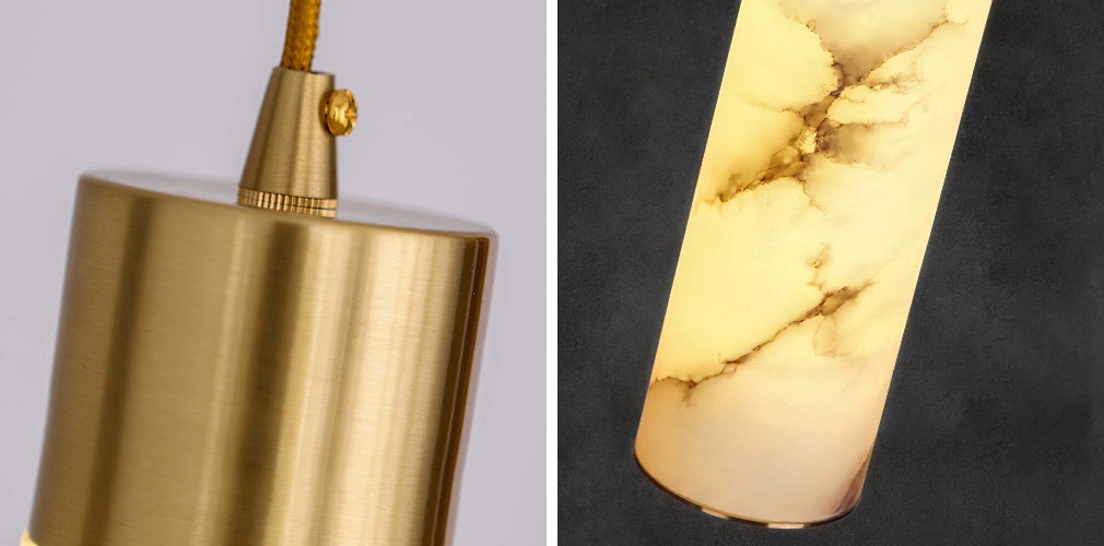 - Attrait intemporel des matériaux : un mélange harmonieux de métal raffiné et d’albâtre naturel pour un style durable.