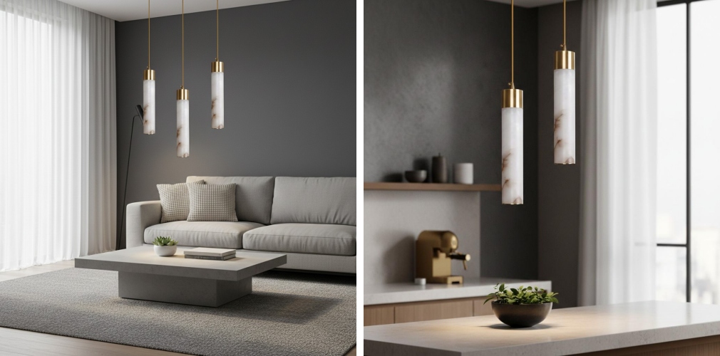 La lampe suspendue Gloforma présente une structure métallique raffinée associée à des abat-jours en albâtre aux veines naturelles, créant une lumière d’ambiance douce. Elle apporte une élégance sculpturale aux salles à manger, aux espaces de vie, aux cuisines et aux intérieurs commerciaux.