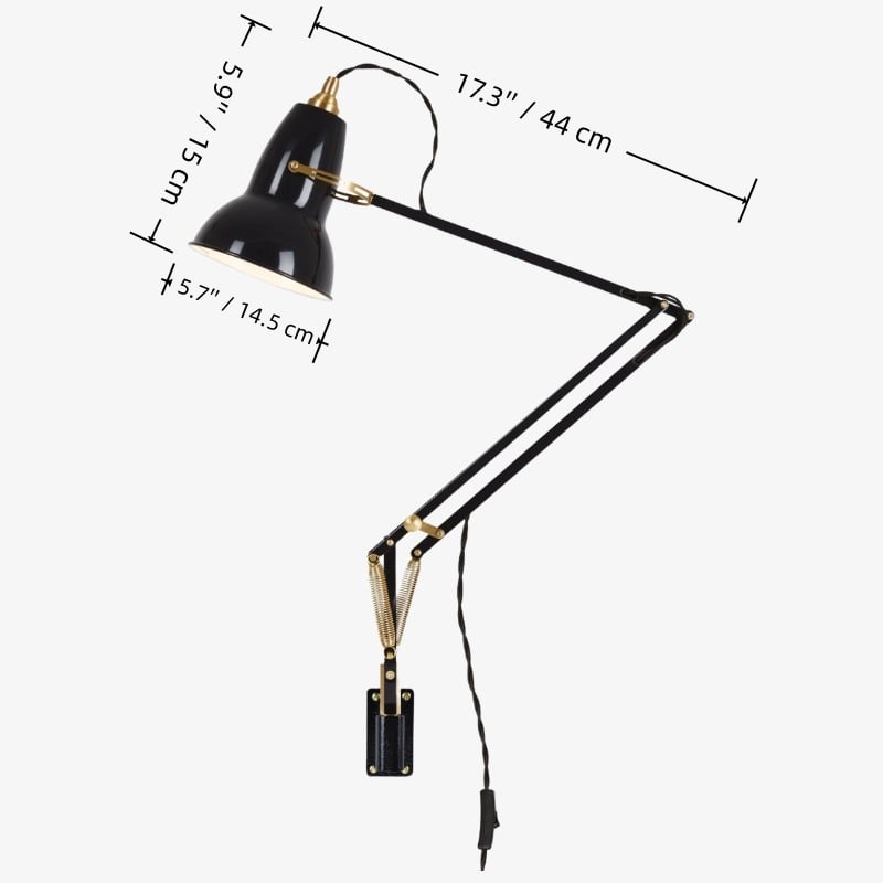 - Portée maximale : 34,4″ / 87,5 cm (de la base à l’abat-jour)