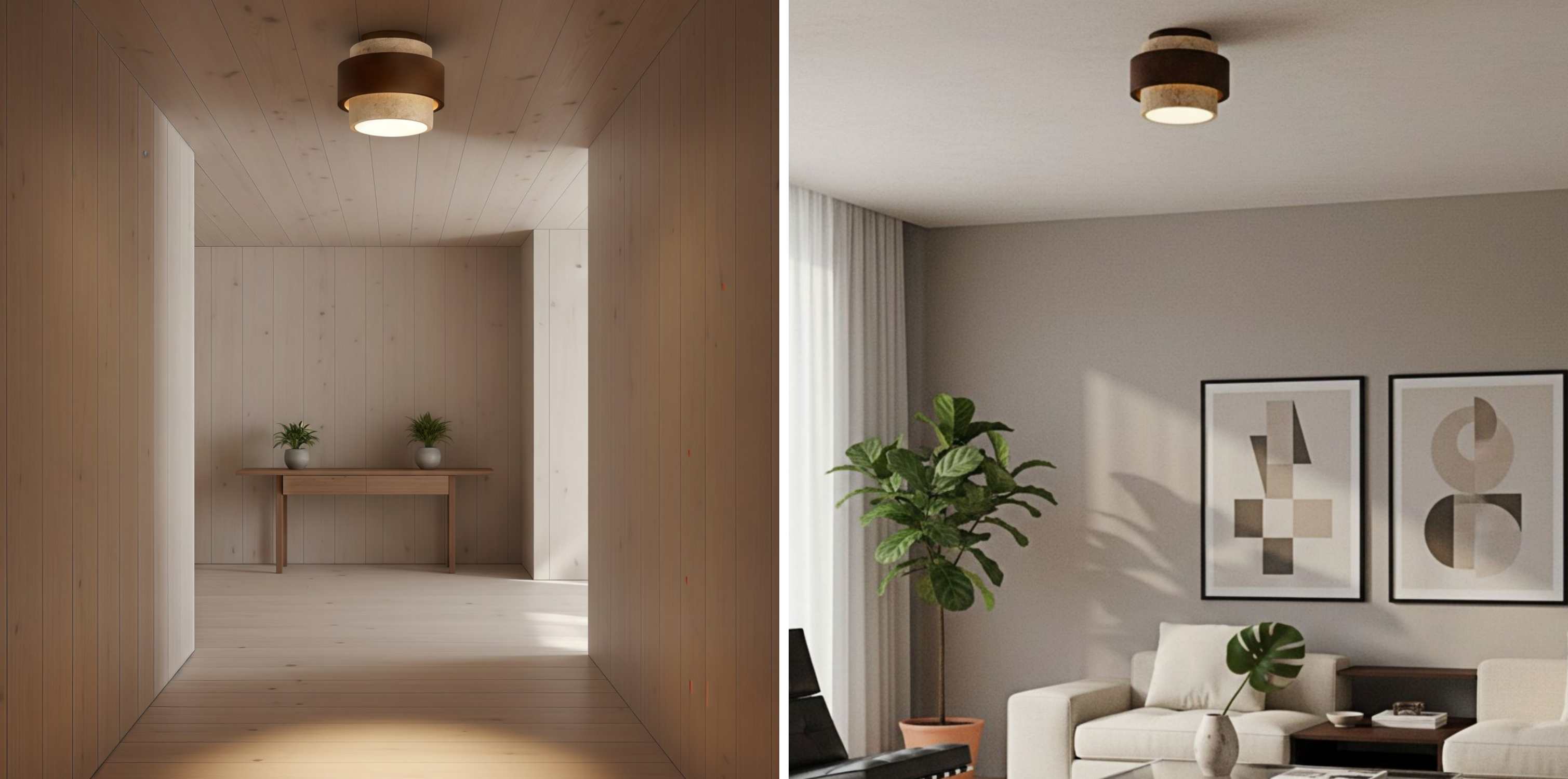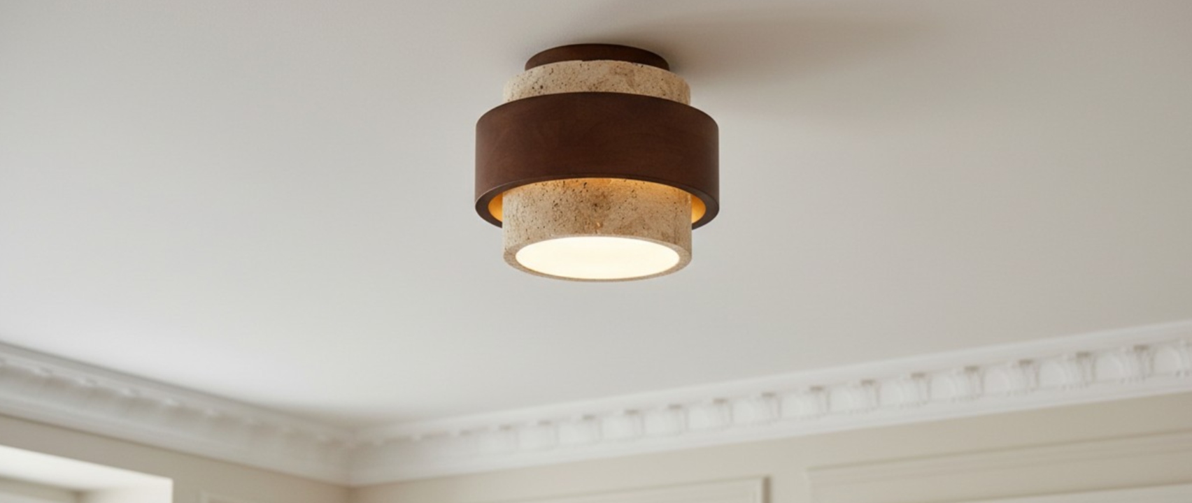 Le plafonnier Wabi-Sabi associe la texture pierreuse naturelle à une forme minimaliste pour un luminaire chaleureux et apaisant. Sa surface organique apporte un charme rustique, tandis que la lumière ambiante douce valorise les couloirs, chambres, salons et espaces d'accueil avec une décoration moderne ou Japandi.