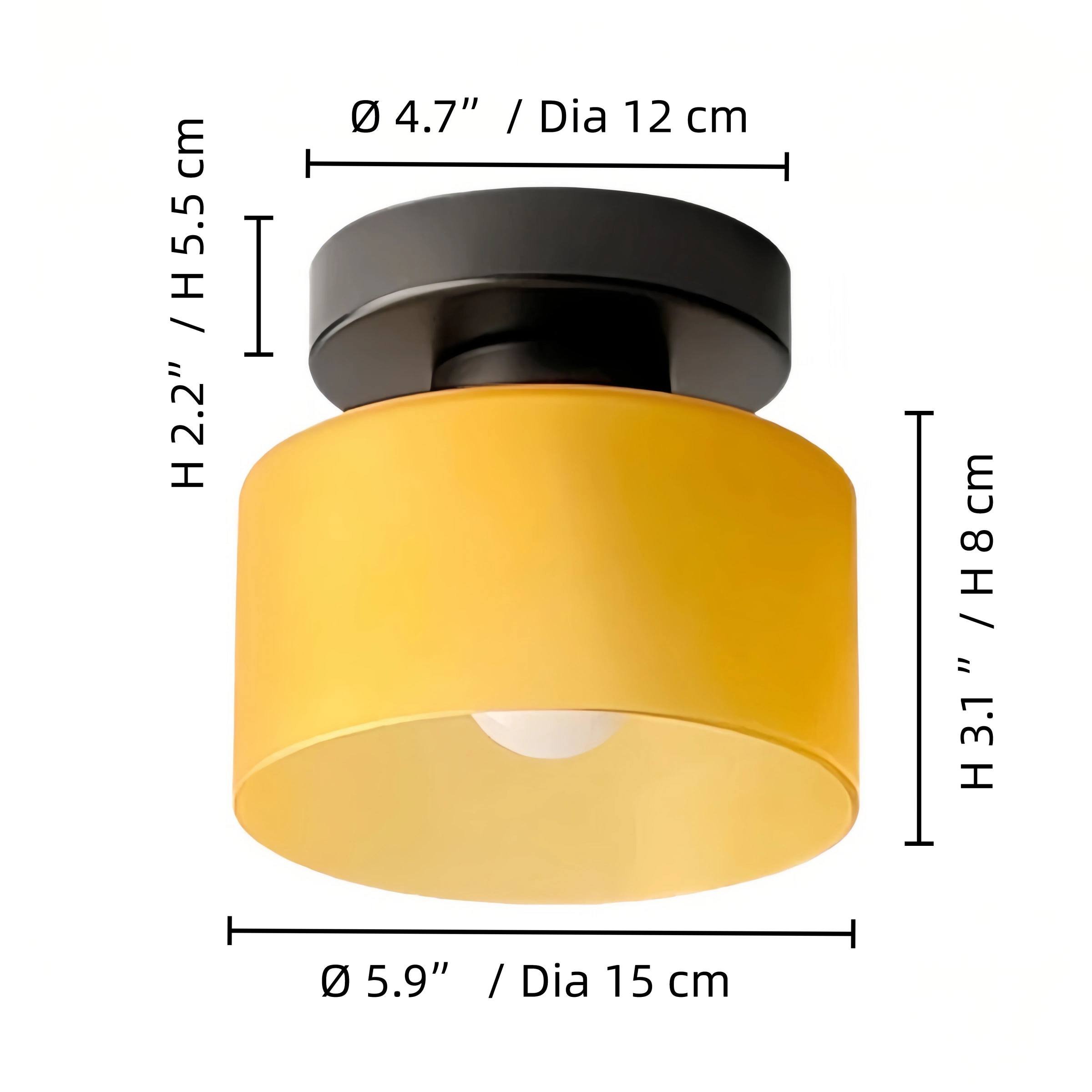 Un plafonnier sculptural cylindrique en verre avec un abat-jour lisse et une base élégante. Fabriqué en verre de haute qualité avec des options de couleurs raffinées et une finition de base noire. Conçu pour les entrées et les salons afin de fournir une illumination douce et ambiante avec un profil moderne encastré.