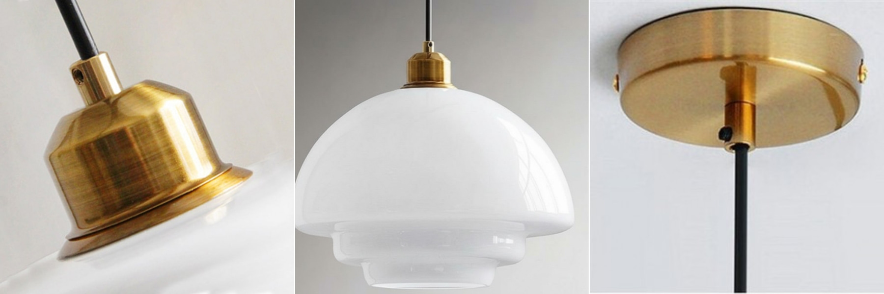 - Finitions : blanc lait avec accessoires en laiton, câble noir.