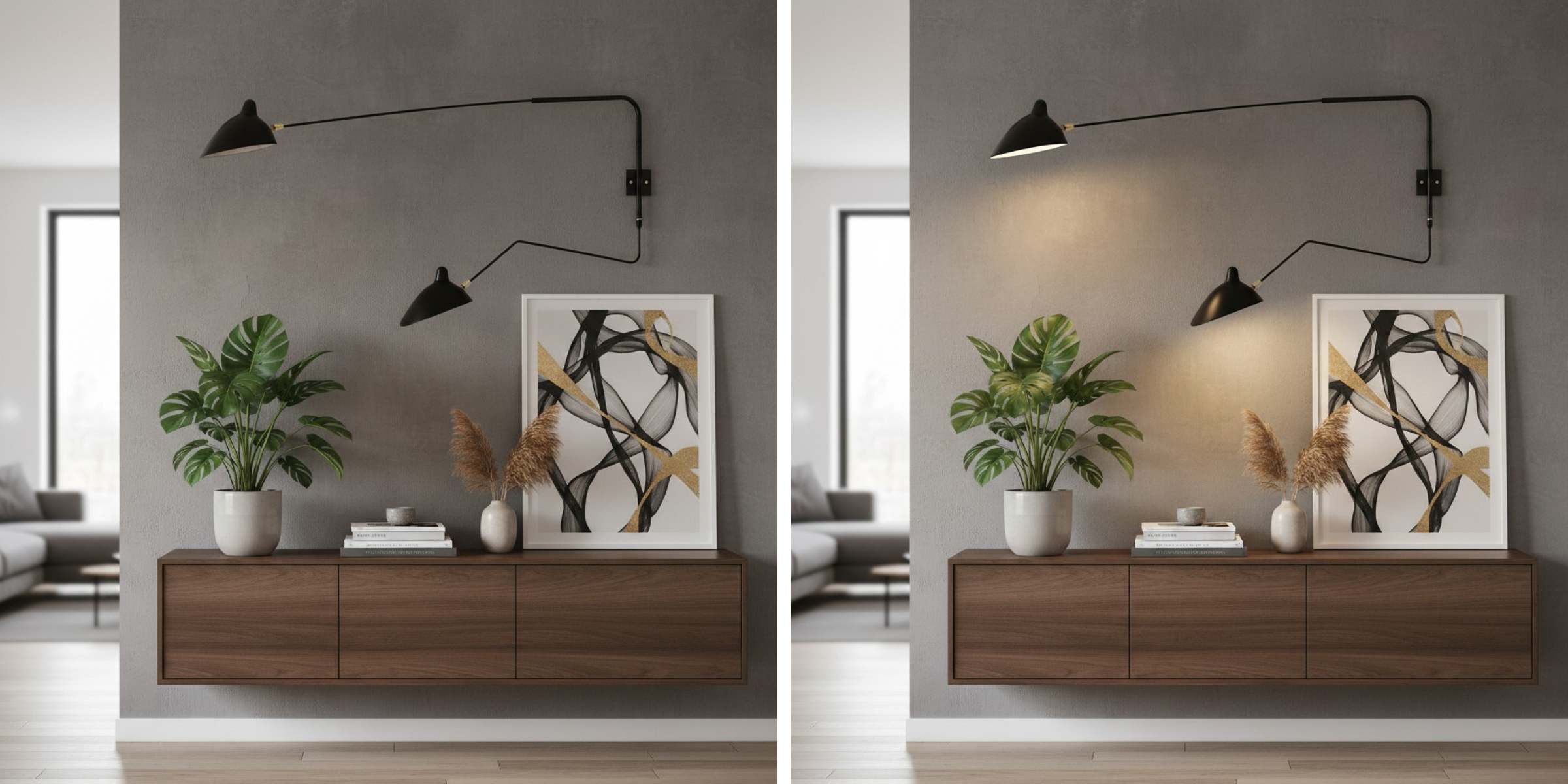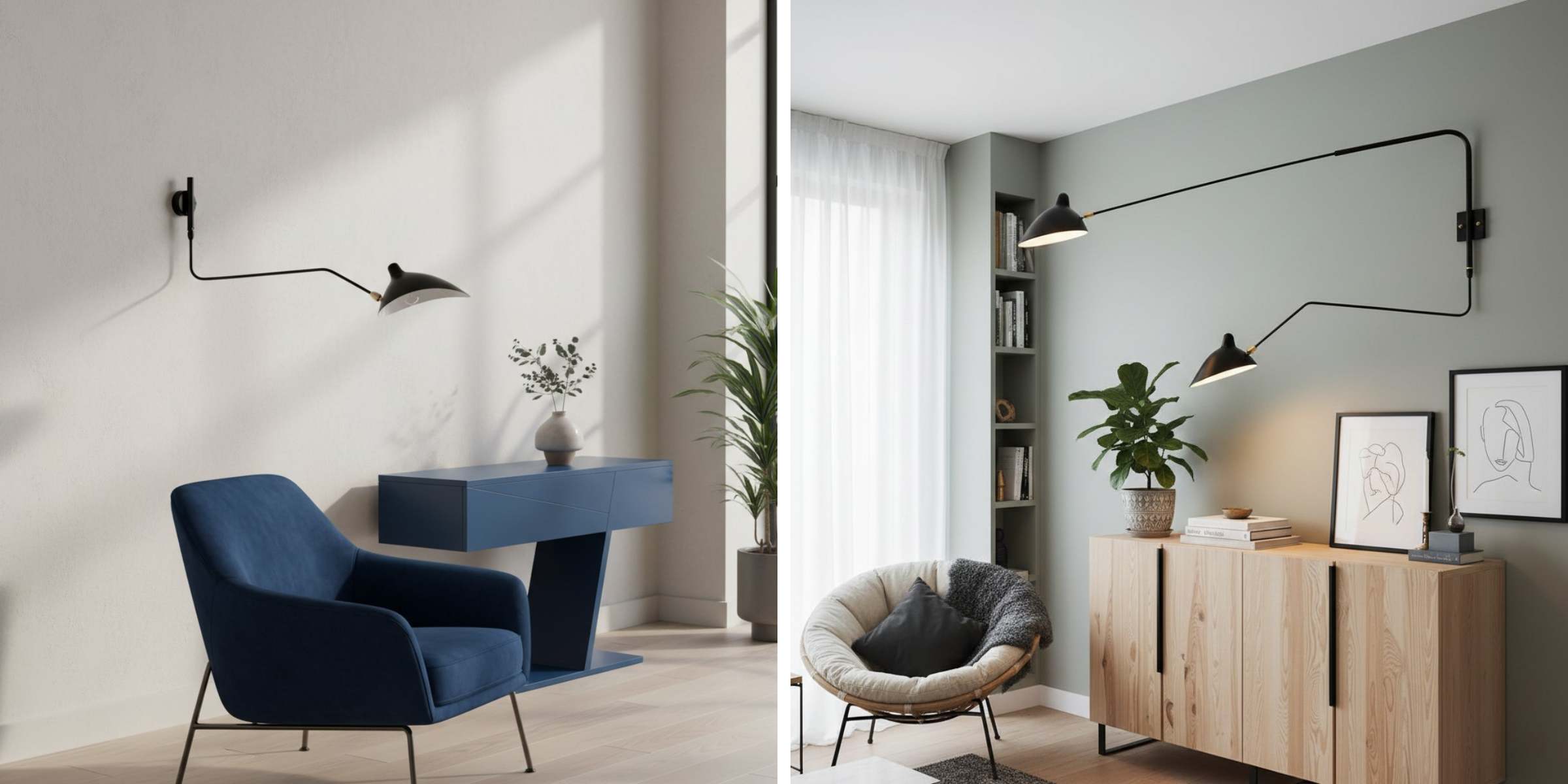 Elevate your interiors with this minimalist designer wall lamp, featuring a slender articulated arm and a rotatable shade that delivers directed light where you need it most. Its refined silhouette and modern geometry blend seamlessly into contemporary, mid‑century, or Scandinavian spaces — ideal for living rooms, bedrooms, hallways, or study areas.