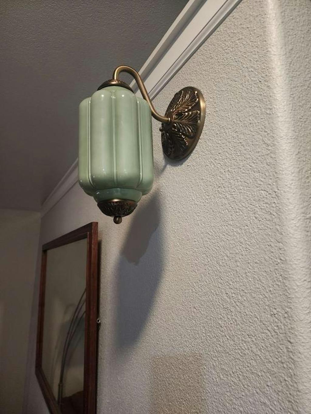 Glass lamp shape; Plated metal with brass and black finish |